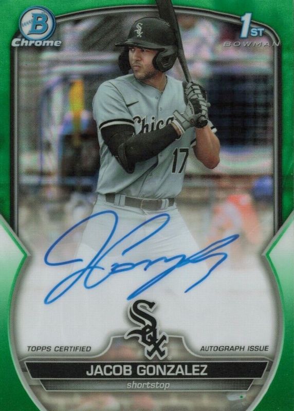 Jacob Gonzalez 2023 Bowman Draft #CDA-JGO Chrome Prospect Auto - Green Lava Refractor /99 (1st) RAW Price Guide