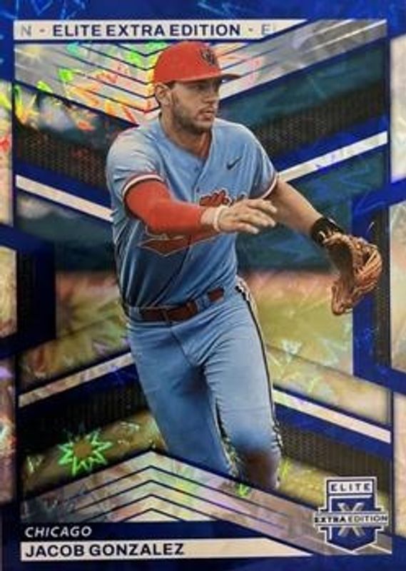 The Jacob Gonzalez 2023 Elite Extra Edition #4 Blue /16 card is 1 of 181 Jacob Gonzalez's card variations in the 2023 Elite Extra Edition set being tracked by Sports Card Investor, including #168 Base, #4 Base, #168 Pink, #4 Pink, and #168 Signatures.