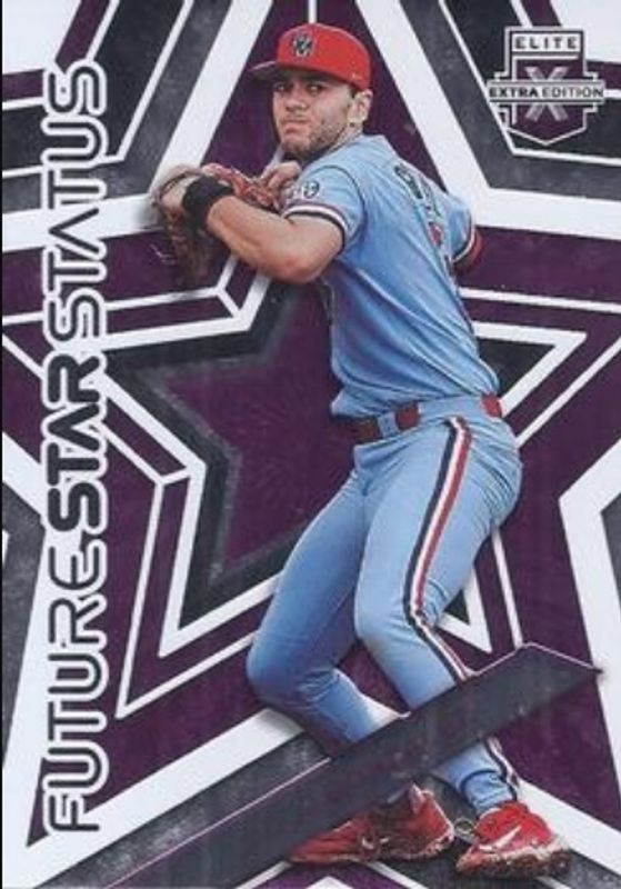 The Jacob Gonzalez 2023 Elite Extra Edition #FS-16 Future Star - Status Purple /49 card is 1 of 181 Jacob Gonzalez's card variations in the 2023 Elite Extra Edition set being tracked by Sports Card Investor, including #168 Base, #4 Base, #168 Pink, #4 Pink, and #168 Signatures.
