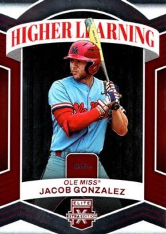 The Jacob Gonzalez 2023 Elite Extra Edition #HL-14 Higher Learning card is 1 of 181 Jacob Gonzalez's card variations in the 2023 Elite Extra Edition set being tracked by Sports Card Investor, including #168 Base, #4 Base, #168 Pink, #4 Pink, and #168 Signatures.