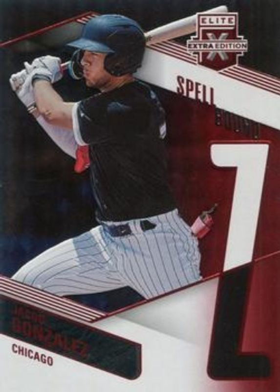 The Jacob Gonzalez 2023 Elite Extra Edition #SP-27 Spellbound card is 1 of 181 Jacob Gonzalez's card variations in the 2023 Elite Extra Edition set being tracked by Sports Card Investor, including #168 Base, #4 Base, #168 Pink, #4 Pink, and #168 Signatures.