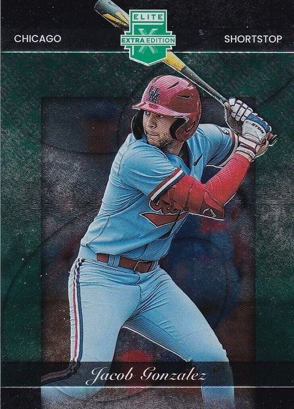 The Jacob Gonzalez 2023 Elite Extra Edition #168 Status Green /499 card is 1 of 181 Jacob Gonzalez's card variations in the 2023 Elite Extra Edition set being tracked by Sports Card Investor, including #168 Base, #4 Base, #168 Pink, #4 Pink, and #168 Signatures.