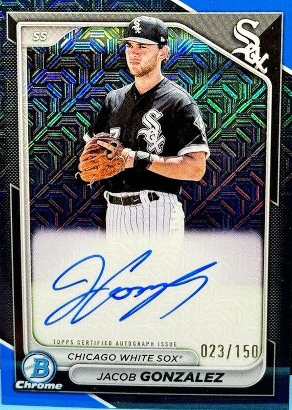 Best Prices Available For Sale of Jacob Gonzalez 2024 Bowman Mega Box #BMA-JGO Chrome Prospect Auto - Blue Refractor /150