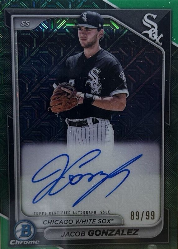 Jacob Gonzalez 2024 Bowman Mega Box #BMA-JGO Chrome Prospect Auto - Green Refractor /99 RAW Price Guide