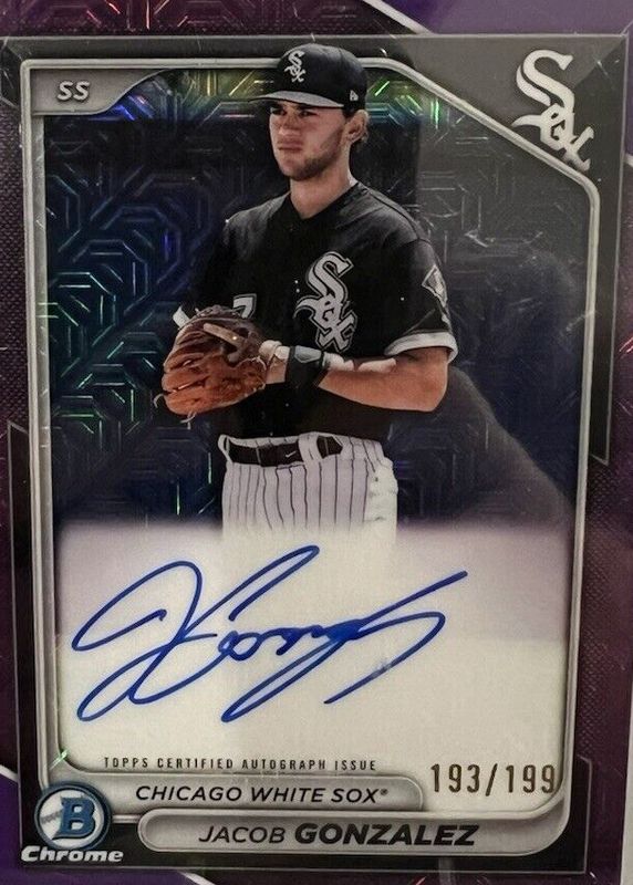 Jacob Gonzalez 2024 Bowman Mega Box #BMA-JGO Chrome Prospect Auto - Purple Refractor /199 RAW Price Guide