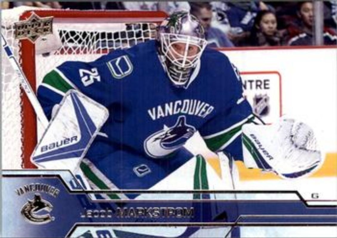 The Jacob Markstrom 2016 Upper Deck #433 Base card is 1 of 11 Jacob Markstrom's card variations in the 2016 Upper Deck set being tracked by Sports Card Investor, including Clear Cut, UD Exclusives /100, UD High Gloss /10, Printing Plates Black /1, and Printing Plates Cyan /1.