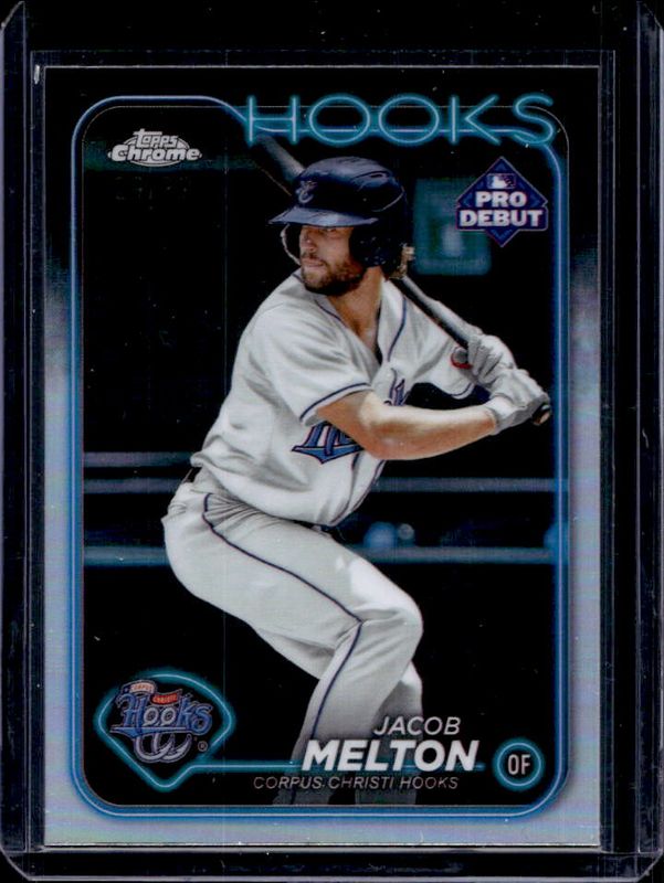 The Jacob Melton 2024 Topps Pro Debut #PDC-30 Chrome - Refractor /99 card is 1 of 37 Jacob Melton's card variations in the 2024 Topps Pro Debut set being tracked by Sports Card Investor, including Base, Fuchsia Foil /199, Sparkle Foil /175, Blue Foil /150, and Green Foil /99.