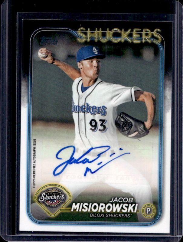 The Jacob Misiorowski 2024 Topps Pro Debut #PD-171 Base Autographs card is 1 of 37 Jacob Misiorowski's card variations in the 2024 Topps Pro Debut set being tracked by Sports Card Investor, including Base, Fuchsia Foil /199, Sparkle Foil /175, Blue Foil /150, and Green Foil /99.