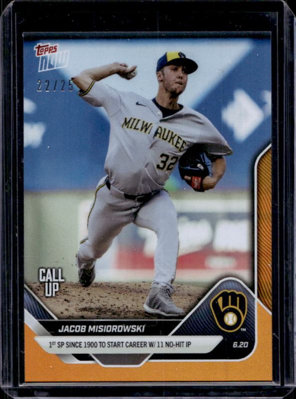 The Jacob Misiorowski 2025 Topps Now #327 Orange Foil /25 card is 1 of 30 Jacob Misiorowski's card variations in the 2025 Topps Now set being tracked by Sports Card Investor, including #291 Base, #327 Base, #349 Base, #402 Base, and #432 Base.