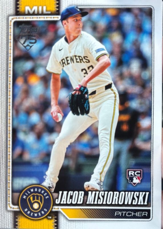 This card is 1 of 166 Jacob Misiorowski's card variations in the 2026 Topps set being tracked by Sports Card Investor, including Base, 1952 Rookie Variation, Aqua Holo Foil, Aqua Rainbow Foil, and Diamante Foil.