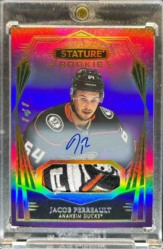Jacob Perreault 2022 Upper Deck Stature #109 Auto Patch - Design Photo Variant Purple /1 Rookie RAW Price Guide