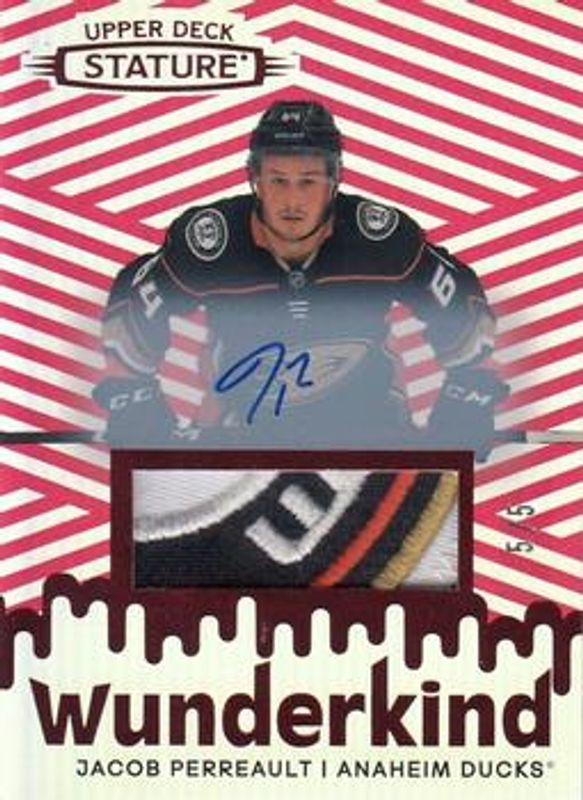 Jacob Perreault 2022 Upper Deck Stature #W-1 Wunderkind Auto Patch - Red /5 Rookie RAW Price Guide