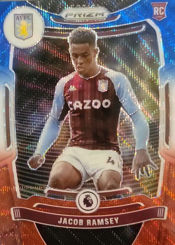The Jacob Ramsey 2021 Prizm Premier League #133 Blue Wave Rookie card in Raw condition has not changed in price in the last 30 days and was last sold for $5.00 .
