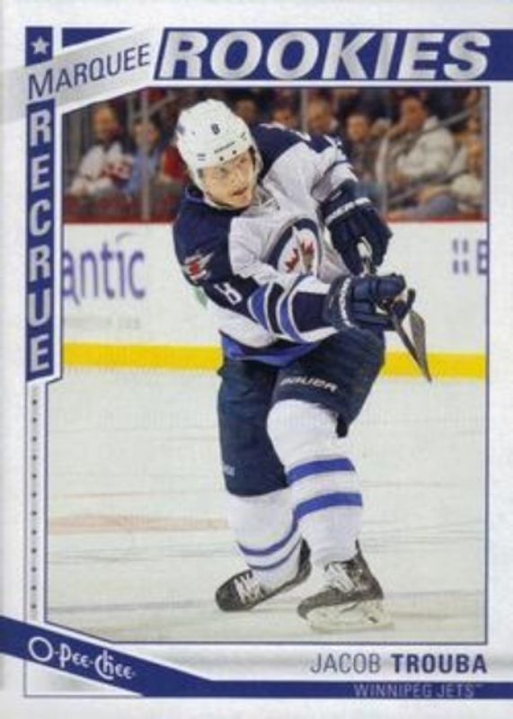 The Jacob Trouba 2013 Upper Deck #622 2013 O-Pee-Chee Update Rookie card is 1 of 19 Jacob Trouba's card variations in the 2013 Upper Deck set being tracked by Sports Card Investor, including Young Guns Base, Young Guns Canvas, Young Guns - Acetate, Young Guns - Jumbo, and Young Guns - UD Exclusives /100.