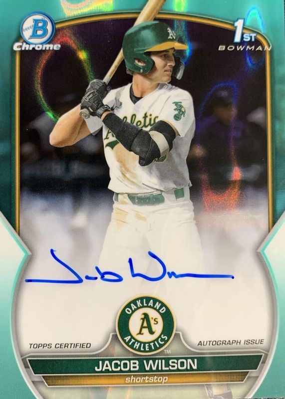 Jacob Wilson 2023 Bowman Draft #CDA-JWI Chrome DP Auto - Aqua Lava Refractor /199 (1st) RAW Price Guide