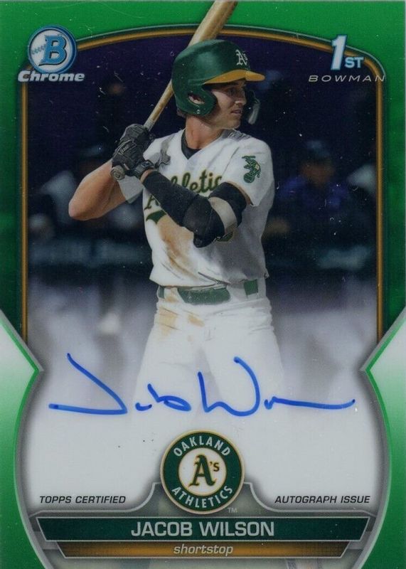 2023 Jacob Wilson 1st Bowman Chrome Auto Green Refractor /99 RC #CDA-JWI MINT 💚