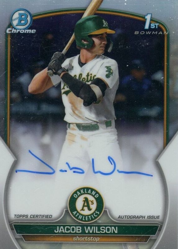 2023 Bowman Chrome Jacob Wilson 1st Bowman Auto Refractor /499 Oakland Athletics
