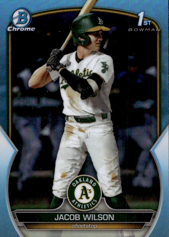 JACOB WILSON 2023 BOWMAN CHROME DRAFT 1ST SKY BLUE REFRACTOR BDC-121 A'S