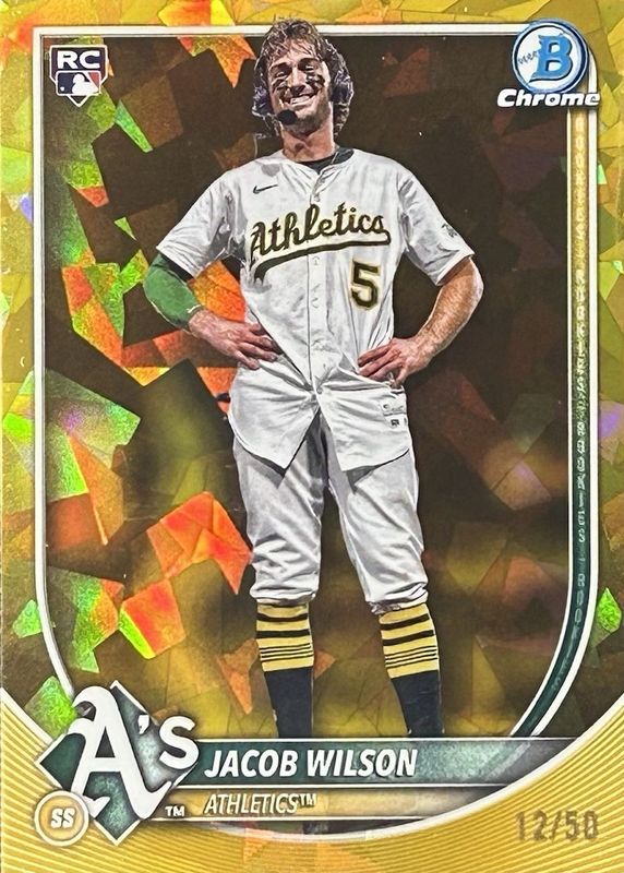The Jacob Wilson 2025 Bowman Chrome Sapphire Edition #1 Image Variation - Gold /50 Rookie card in Raw condition has not changed in price in the last 30 days and was last sold for $168.50 .