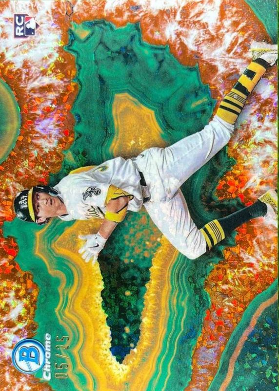 This card is 1 of 10 Jacob Wilson's card variations in the 2025 Bowman set being tracked by Sports Card Investor, including Red Rookie Logo Chrome, Etched in Glass Variation /(SSP), Bowman Spotlights /(SSP), Crystalized /(SSP), and Crystalized - Gold Refractor /50.