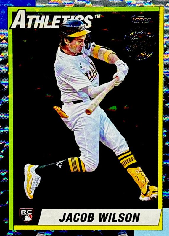 The Jacob Wilson 2025 Topps #T90-29 1990 Topps Baseball - Black Crackle Foilboard /10 Rookie card in Raw condition has not changed in price in the last 30 days and was last sold for $129.99 .