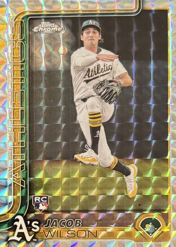 The Jacob Wilson 2025 Topps Chrome #96 Geometric Refractor Rookie card in Raw condition has not changed in price in the last 30 days and was last sold for $1.25 .