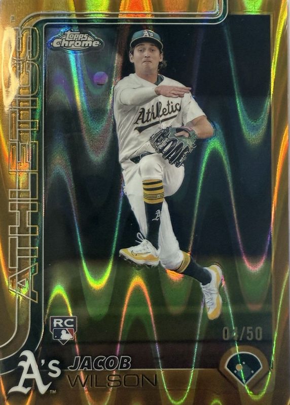 JACOB WILSON 2025 TOPPS CHROME #96 GOLD RAYWAVE REFRACTOR RC #'D 24/50 - A's