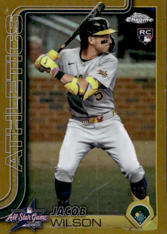 The Jacob Wilson 2025 Topps Chrome Update #ASGC-4 2025 All-Star Game - Gold Refractor /50 Rookie card in Raw condition has moved up $31.69 (+60.9%) in the last 30 days and was last sold for $83.69 .