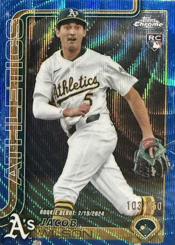 2025 Topps Chrome Update Jacob Wilson RC Debut Blue Wave Refractor/150 Athletics