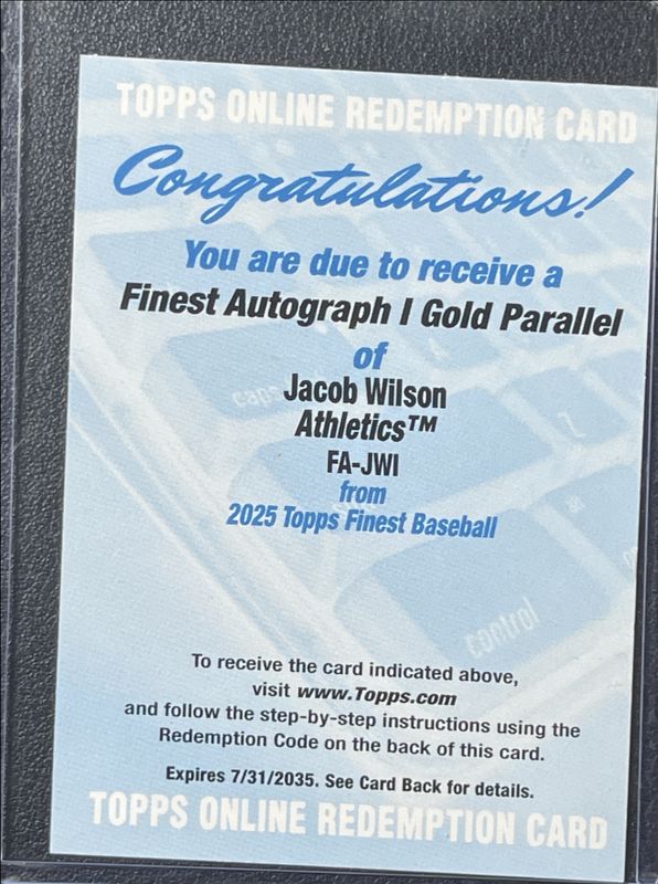 Jacob Wilson 2025 Topps Finest #FA-JWI Finest Autographs - Gold Refractor /50 Rookie RAW Price Guide
