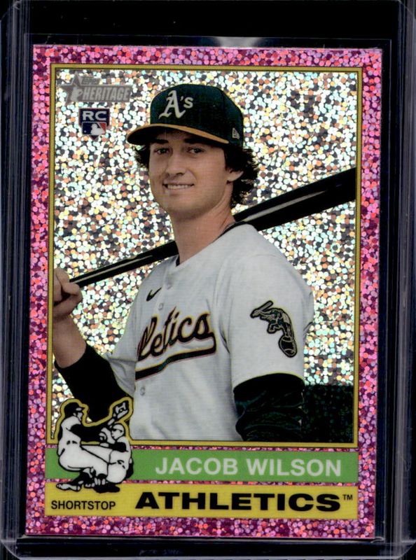 2025 Topps Heritage - Jacob Wilson #15 Chrome Pink Sparkle Refractor (RC) A's