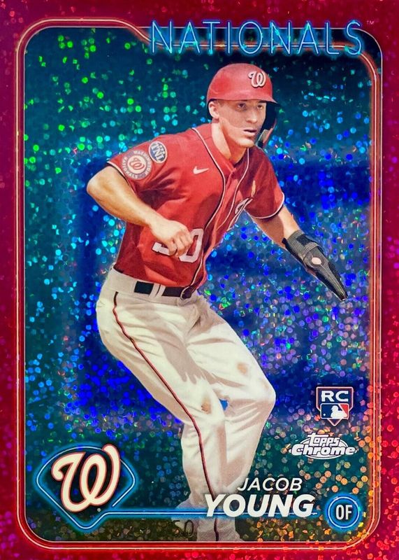 This card is 1 of 43 Jacob Young's card variations in the 2024 Topps Chrome set being tracked by Sports Card Investor, including Base, Negative Refractor, Pink Refractor, Prism Refractor, and RayWave Refractor.