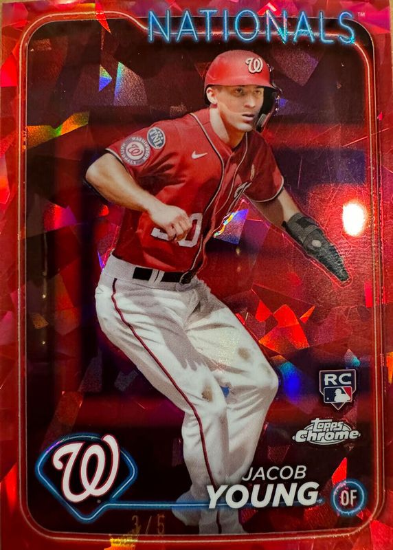 This card is 1 of 7 Jacob Young's card variations in the 2024 Topps Chrome Sapphire Edition set being tracked by Sports Card Investor, including Base, Gold /50, Orange /25, Black /10, and Padparadscha /1.