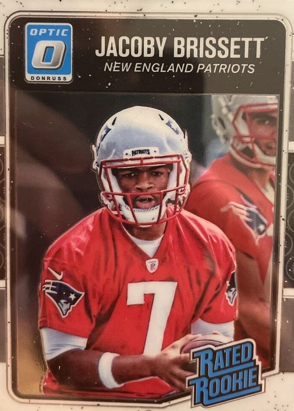 The Jacoby Brissett 2016 Optic #170 Base Rookie card in Raw condition has moved up $2.10 (+120%) in the last 30 days and was last sold for $3.85 .