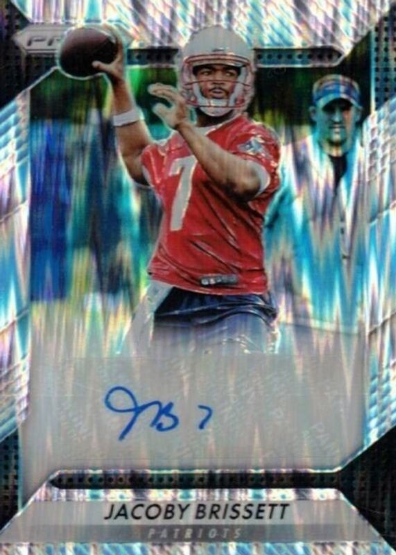 This card is 1 of 30 Jacoby Brissett's card variations in the 2016 Prizm set being tracked by Sports Card Investor, including Flash, Green, Pink, Red White Blue Disco, and Silver.