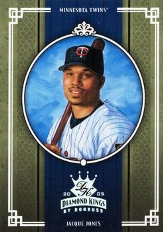 The Jacque Jones 2005 Diamond Kings #129 Silver /25 card is 1 of 73 Jacque Jones' card variations in the 2005 Diamond Kings set being tracked by Sports Card Investor, including Base, Framed Red, Non Canvas, Framed Blue /100, and Bronze /50.