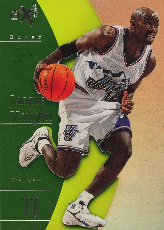 This card is 1 of 2 Jacque Vaughn's card variations in the 1997 Skybox E-X2001 set being tracked by Sports Card Investor, including Essential Credentials Future (/16).