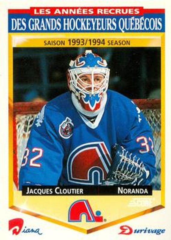 Jacques Cloutier 1993 Score Durivage #18 Base RAW Price Guide