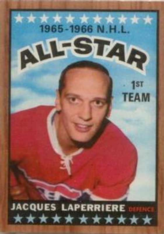 The Jacques Laperriere 1966 Topps #122 Base card is 1 of 2 Jacques Laperriere's card variations in the 1966 Topps set being tracked by Sports Card Investor, including Base.