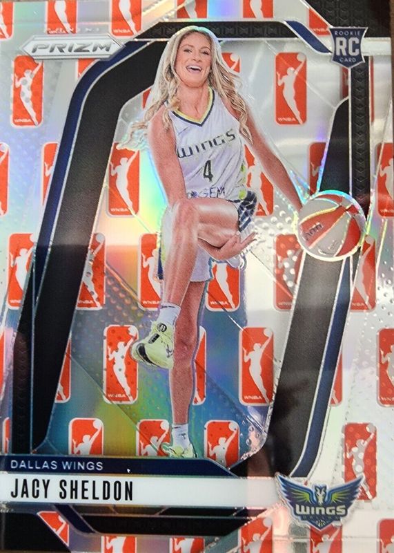 The Jacy Sheldon 2024 Prizm WNBA #141 Rookie Variation - WNBA Logo card in Raw condition has moved down -$8.50 (-42.5%) in the last 30 days and was last sold for $11.50 .