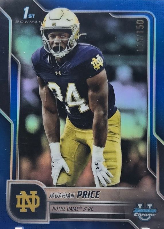 Jadarian Price 2025 Bowman Chrome U True Blue Refractor 114/150 #117, Notre Dame