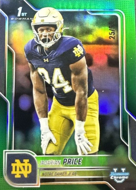 Jadarian Price 2025 Bowman U Chrome - 1st Green /99 SP - Notre Dame