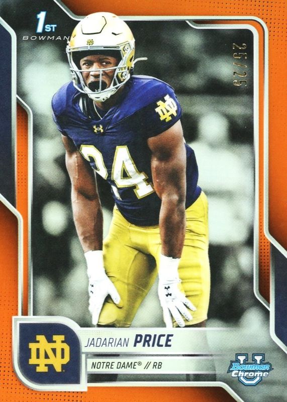 2025 Bowman Chrome University Jadarian Price Orange Refractor /25 Notre Dame 1st