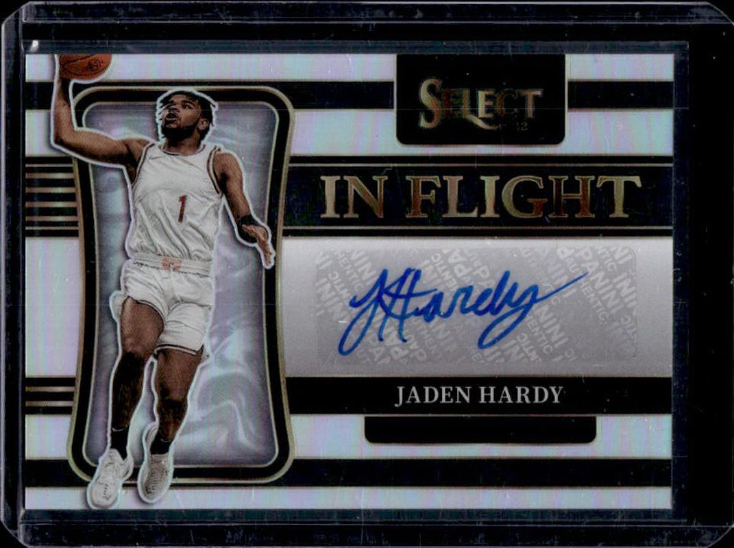 The Jaden Hardy 2022 Chronicles Draft Picks #IN-JHA In Flight Signatures /99 Rookie card is 1 of 135 Jaden Hardy's card variations in the 2022 Chronicles Draft Picks set being tracked by Sports Card Investor, including Base, Black, Bronze, Pink, and Pulsar.