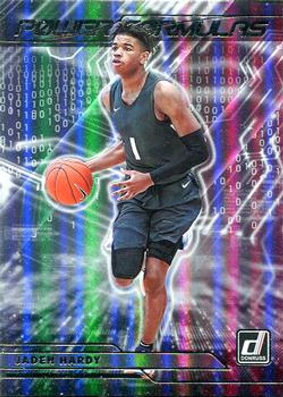 The Jaden Hardy 2022 Chronicles Draft Picks #PF-JHA Power Formulas Rookie card is 1 of 135 Jaden Hardy's card variations in the 2022 Chronicles Draft Picks set being tracked by Sports Card Investor, including Base, Black, Bronze, Pink, and Pulsar.