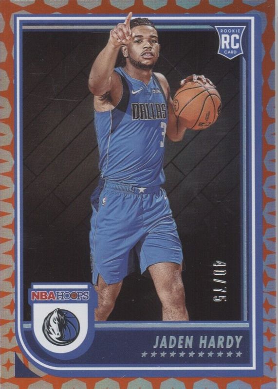 The Jaden Hardy 2022 Hoops #263 Gravity /75 Rookie card in Raw condition has not changed in price in the last 30 days and was last sold for $9.19 .
