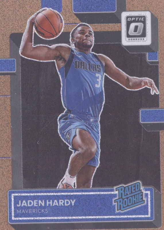 The Jaden Hardy 2022 Optic #248 Copper Glitter /99 Rookie card in Raw condition has not changed in price in the last 30 days and was last sold for $1.50 .