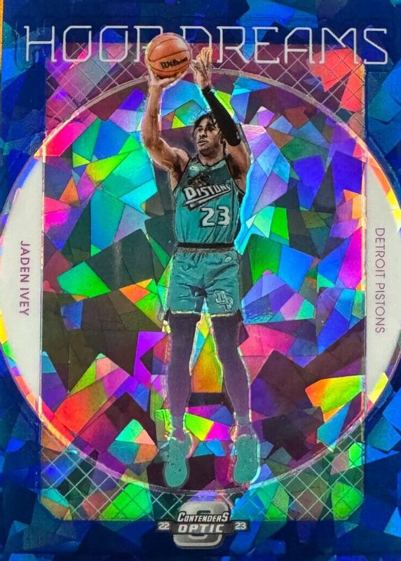 2022-23 Panini Contenders Optic Hoop Dreams Blue Cracked Ice Jaden Ivey RC /75