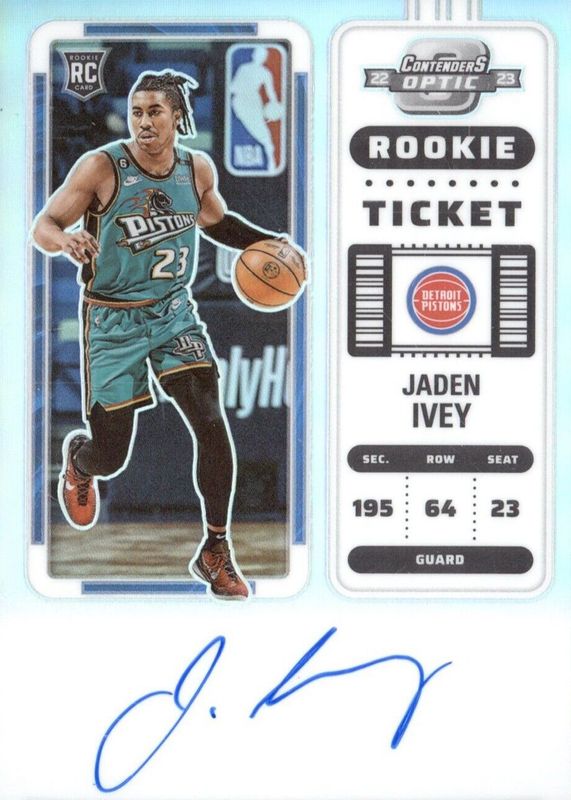 JADEN IVEY 2022-23 PANINI CONTENDERS OPTIC #139 ROOKIE VAR PRIZM AUTO PISTONS RC