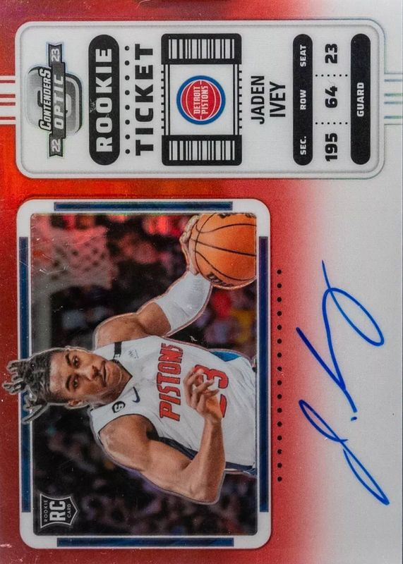2022-23 Contenders Optic Jaden Ivey Rookie Variation Season Ticket Red Auto /99